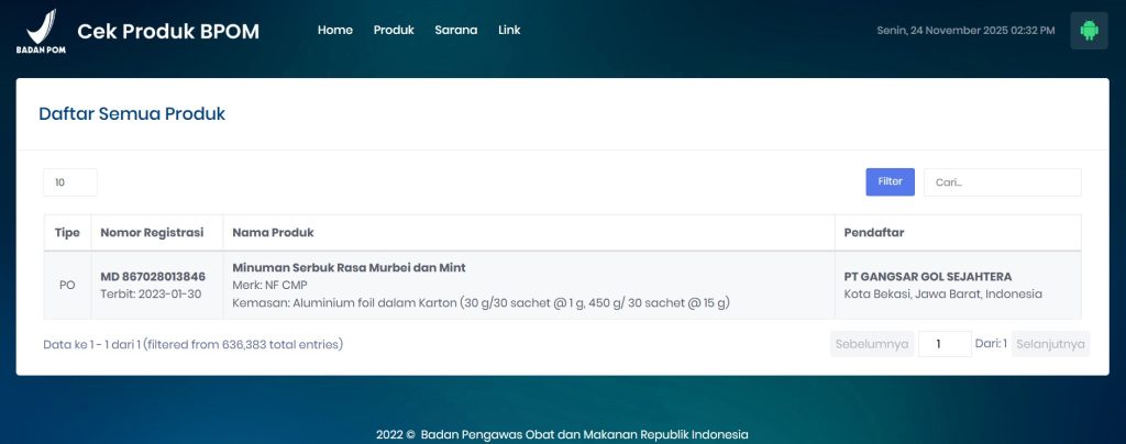 Izin Edar NF-CMP - MD 867028013846 - Per Box Isi 30 Sachet
